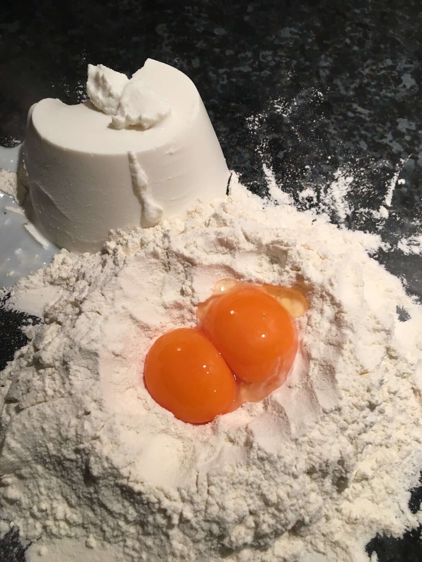 A tésztát 4 részre osztjuk és ezekből kb. hüvelykujj vastagságú hurkákat sordunk. Belisztezzük és késsel gnocci méretű darabokra vágjuk. A kész gnoccikat is megszórjuk liszttel és megforgatjuk, különben összeragadnak.